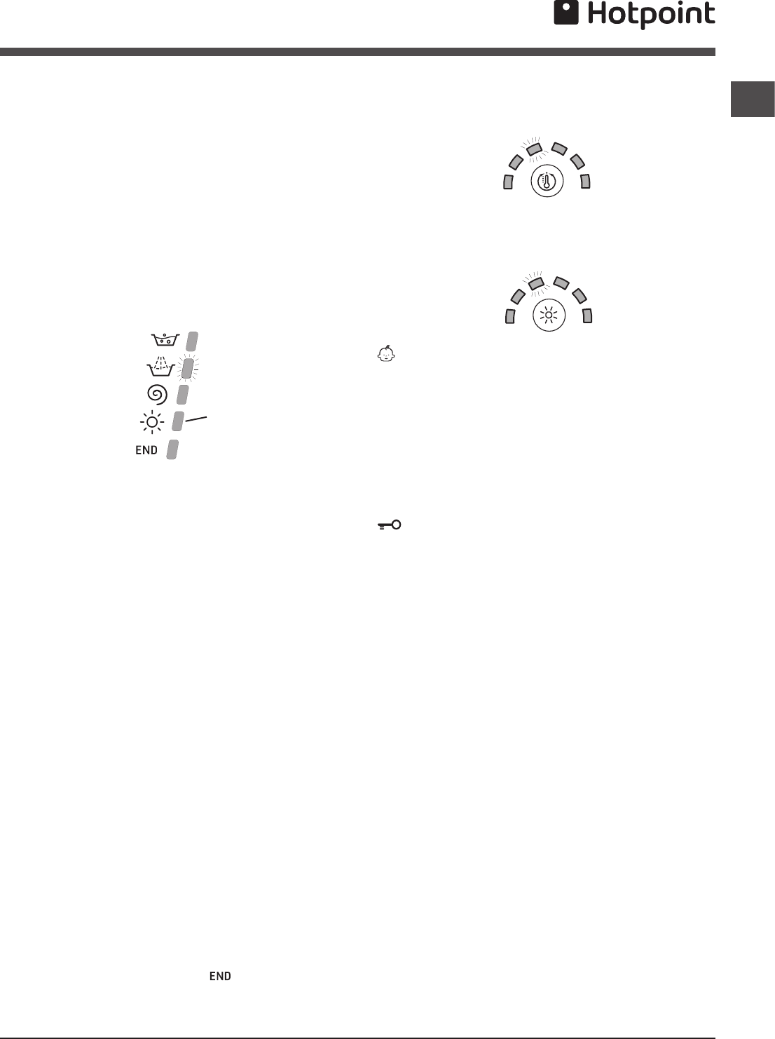 then only the indicator lights relative to the selected programme settings will remain lit and the START/PAUSE indica-