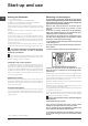Start-up and use EN Starting the dishwasher 1. Turn the water tap on. 2. Open the door and press the ON/OFF button. 3. Measure out the detergent. (see adjacent information). 4. Load the racks (see Loading the racks). 5. Select the wash cycle in accordance with the type of crockery and its soil level (see Table of wash cycles) by pressing the P button. 6. Select the wash options*. (see Special wash cycles and Options). 7. Start the wash cycle by shutting the door. 8.