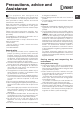 Precautions, advice and Assistance This appliance was designed and manufactured in compliance with international safety standards The following information has been provided for safety reasons and should therefore be read carefully. Keep this instruction manual in a safe place for future reference. If the appliance is sold, given away or moved, please ensure the manual is kept with the machine. Please read these instructions carefully: they contain important information on installation, use and safety.