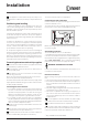 Installation FR En cas de déménagement, transporter l’appareil verticalement; si besoin est, l’incliner sur le dos. Mise en place et mise à niveau 1. Déballer l’appareil et s’assurer qu’il n’a pas été endommagé pendant le transport. S’il est abîmé, ne pas le raccorder et contacter le revendeur. Raccordement du tuyau d’évacuation de l’eau Raccorder le tuyau d’évacuation, sans le plier, à une conduite d’évacuation ayant au moins 4 cm de diamètre.