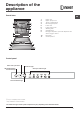 Description of the appliance Overall view EN 1. 2. 3. 4. 5. 6. 7. 8. 9. 10. 11. Upper rack Upper sprayer arm Tip-up compartments Rack height adjuster Lower rack Lower sprayer arm Washing filter Salt dispenser Detergent dispenser, rinse-aid dispenser and Active Oxygen device* Data plate Control panel*** Control panel Select wash cycle button Salt indicator light ON-OFF/Reset button and indicator light Wash cycle indicator light Rinse aid indicator light ***Only in completely built-in models.