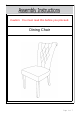 Step 1 Place the chair back (A) on a soft surface to avoid any scratches on the products. Take out the 2 wooden legs and the package of hardware accessories. Step 2 3 2 1 Put the chair back( A) onto a flat table or panel. Insert the positioning dowels on the chair seat back panel (B) to the positioning holes on the chair back panel(A). Align the holes on chair back(A) to the holes on chair seat frame. Use your left hand to push the seat frame floorwards, depicted by Arrow 1.