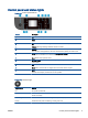 Control panel and status lights Figure 2-1 Control panel features Feature Description 1 On button: Turns the printer on or off. 2 home: Returns to the Home screen, the screen that is displayed when you first turn on the printer. 3 Up button: Use this button to navigate menus and select number of copies. 4 Wireless status light: Blue light indicates wireless connection. 5 Wireless button: Press the button to view wireless status and menu options.