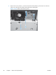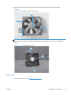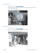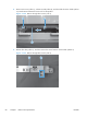 3. Remove one screw (callout 1), and then remove the right upper cassette rail (callout 2).