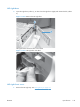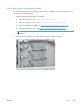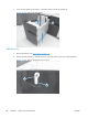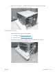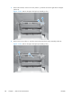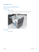 2. Remove three screws (callout 1), and then remove the right lower cover (callout 2).