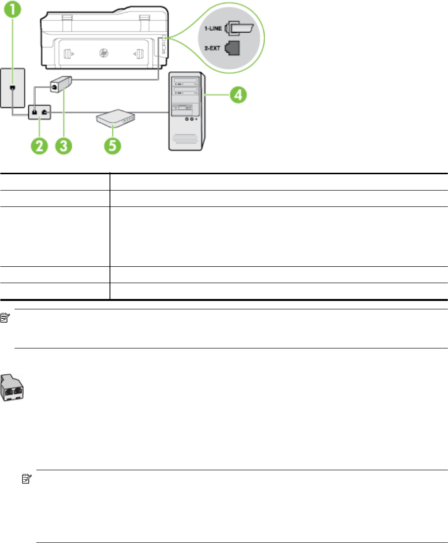NOTE: You need to purchase a parallel splitter. A parallel splitter has one RJ-11 port on the front and two