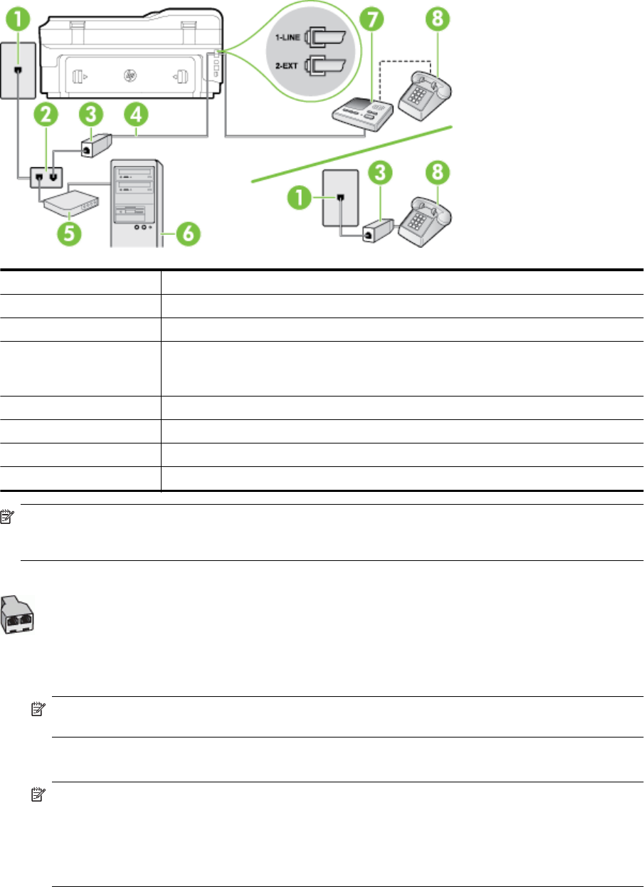 NOTE: You need to purchase a parallel splitter. A parallel splitter has one RJ-11 port on the front and two