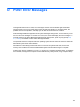 This appendix lists the error codes, error messages, and the various indicator light and audible