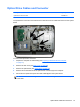 3. Loosen the captive Phillips screw that secures the drive to the computer (1).