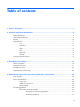 Table of contents 1 Product description ........................................................................................................... 1 2 External component identification ..................................................................................... 4 Multimedia features .................................................................................................................. 4 Tablet edge components .............................................................................