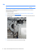 4. Remove the three Torx screws that secure the fan to the computer (1).