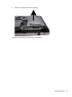 3. Remove the two Torx screws that secure the bracket to the computer (1), and then lift the bracket off