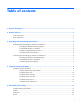 Table of contents 1 Product description ........................................................................................................... 1 2 Product features ............................................................................................................... 3 Front components ..................................................................................................................... 3 Rear components ...........................................................................