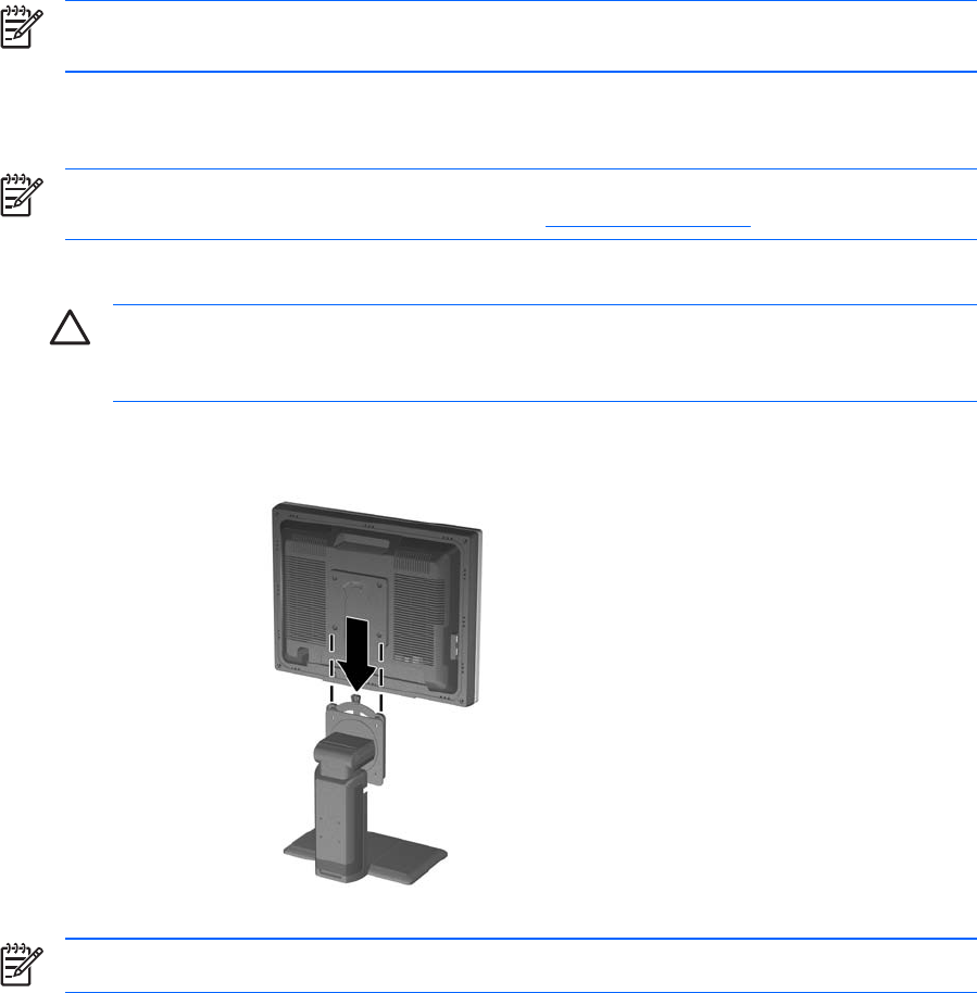 NOTE Do not install the pedestal base if the monitor will be used on a wall, swing arm, or