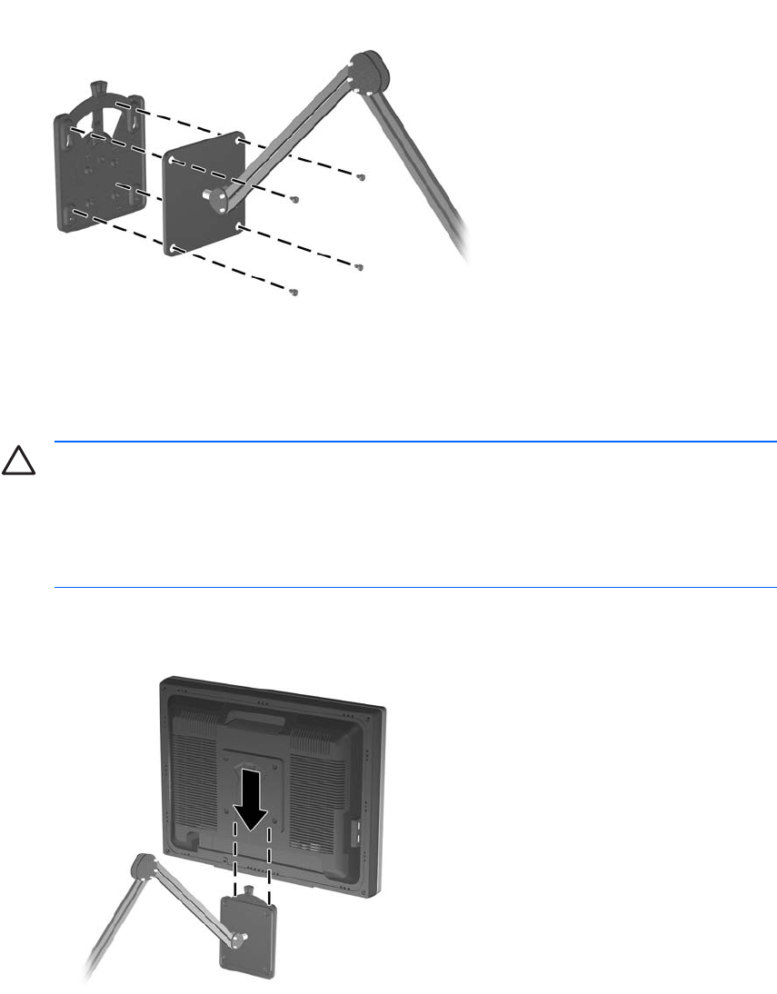 4. Insert the monitor panel into the Quick Release, and then press down firmly on the monitor to