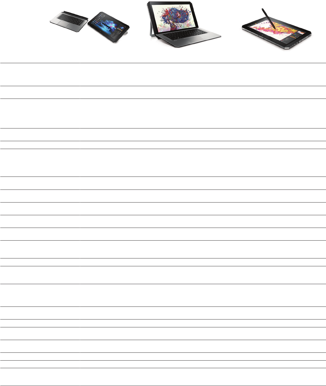 HP ZBook x2 G4 Detachable Workstation Specifications Table
