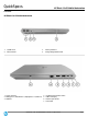 QuickSpecs HP ZBook 15v G5 Mobile Workstation Overview HP ZBook 15v G5 Mobile Workstation LEFT VIEW 1. 2. (2) USB-A 3.0 SD Card reader 3. 4. Security cable slot Storage Usage Indicator LED RIGHT VIEW 1. power connector 2. USB Type-C™ (Thunderbolt™ 3, DisplayPort™ 1.2, USB 3.1) 3. HDMI 2.0 4. 5. 6. 7. headphone/microphone combo USB 3.