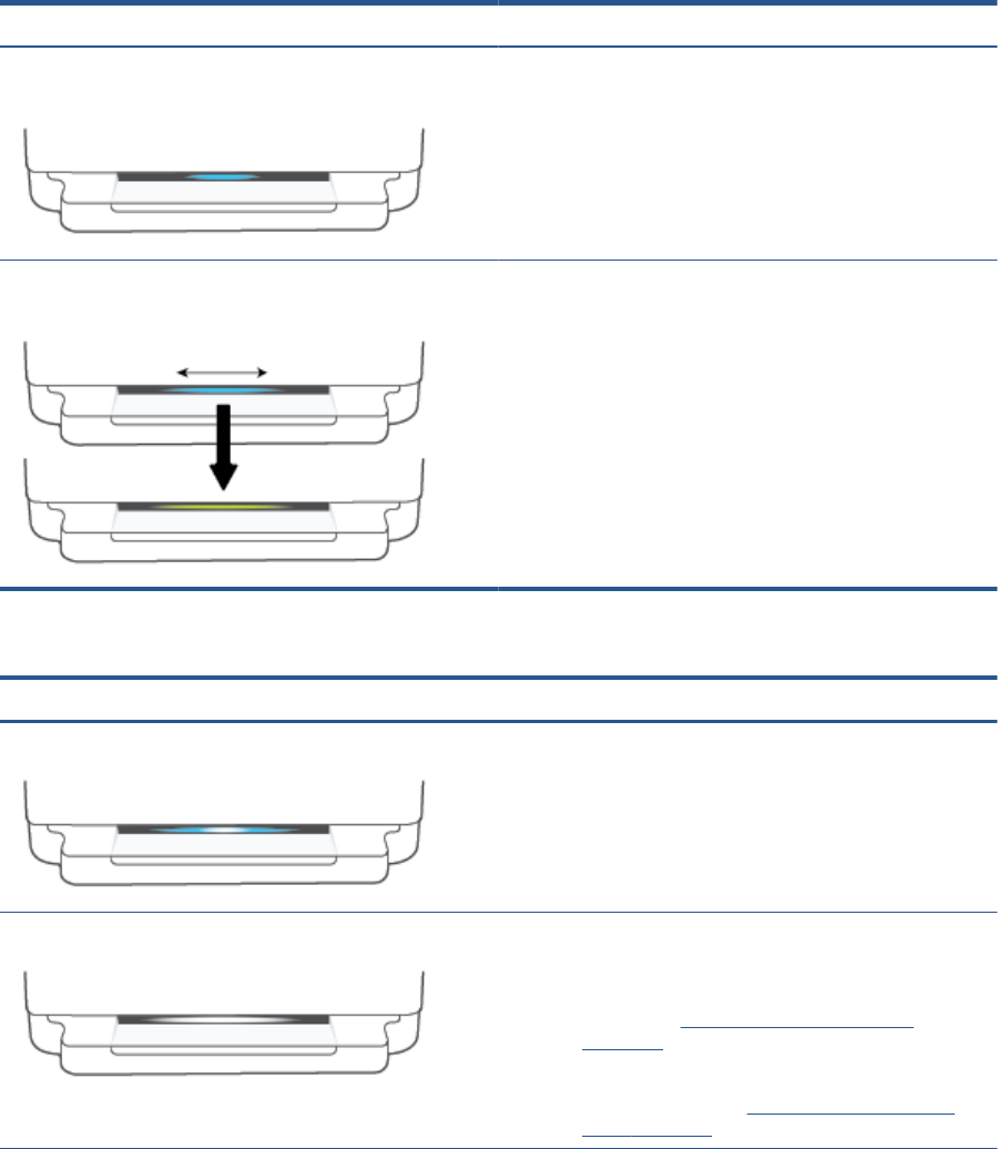 The light bar glows blue-white in the center. The printer is idle and connected to a wireless network.