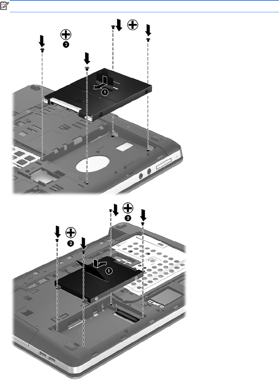 3. Helyezze vissza a merevlemezt rögzítő négy csavart (2).