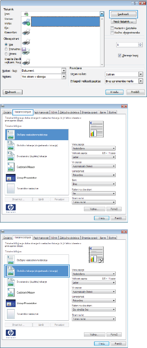 - Sprememba nastavitev gonilnika tiskalnika za OS Windows