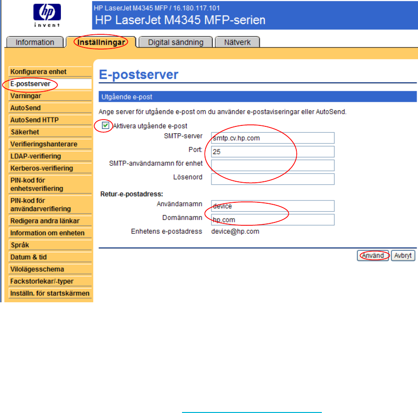 OBS! För att kontrollera att SMTP-servern överför e-postmeddelandet till externa destinationer