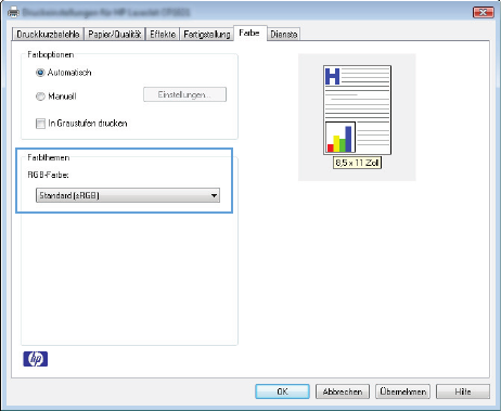 Geräts auszugeben. Die Farben können im Softwareprogramm oder im Betriebssystem zur