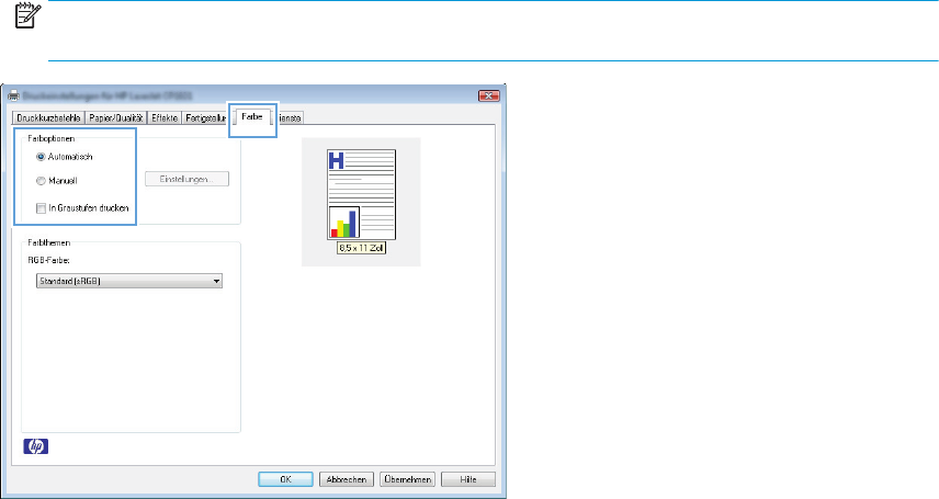 HINWEIS: Manuelle Anpassungen der Farbeinstellungen können sich auf die Druckergebnisse