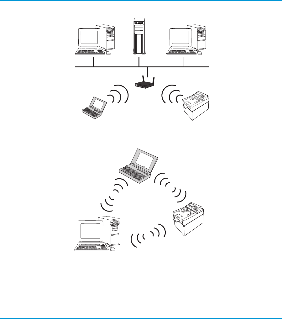 Drahtloses Adhoc-Netzwerk Das Gerät kommuniziert ohne Verwendung eines drahtlosen Routers mit anderen drahtlosen