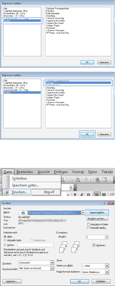 - Drucken auf Spezialpapier, Etiketten oder Transparentfolien unter Windows