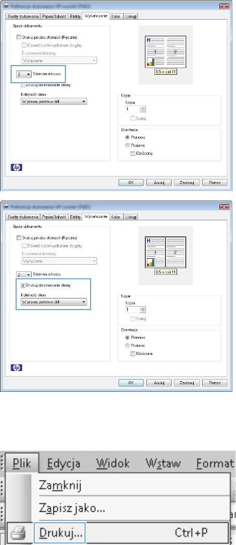 5. Wybierz odpowiednie opcje Drukuj obramowanie