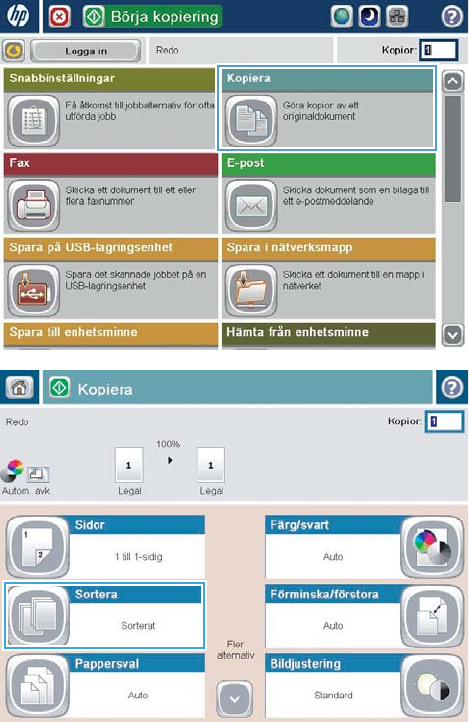 Sortera ett kopieringsjobb