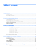 Table of contents 1 Product Features ............................................................................................................... 1 Front Components .................................................................................................................... 3 Rear and Side Components ....................................................................................................... 4 2 Installing and Customizing the Software ...................................................