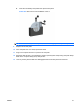 a. Pull back on the clip (1) that is holding the battery in place, and remove the battery (2).