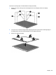 15. Remove the backlight cables (1) from the clip (2) in the display panel.