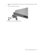 4. Lift the upper left corner of the keyboard (1) and swing the left side of the keyboard (2) forward.