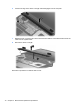 6. Release the zero insertion force (ZIF) connector (1) to which the keyboard cable is attached, and