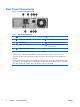 Media Card Reader Components The media card reader is an optional device available on some models only. Refer to the following illustration and table to identify the media card reader components. Figure 1-3 Media Card Reader Components Table 1-2 Media Card Reader Components 1 2 3 ENWW SmartMedia/xD ● 3.