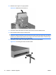 11. Connect the SATA data cable to the white system board connector labeled SATA1.