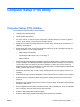 Table 4 Computer Setup—Security (continued) Network Service Boot Enables/disables the computer’s ability to boot from an operating system installed on a network server. (Feature available on NIC models only; the network controller must be either a PCI expansion card or embedded on the system board.) System IDs Allows you to set: DriveLock Security ● Asset tag (18-byte identifier), a property identification number assigned by the company to the computer.