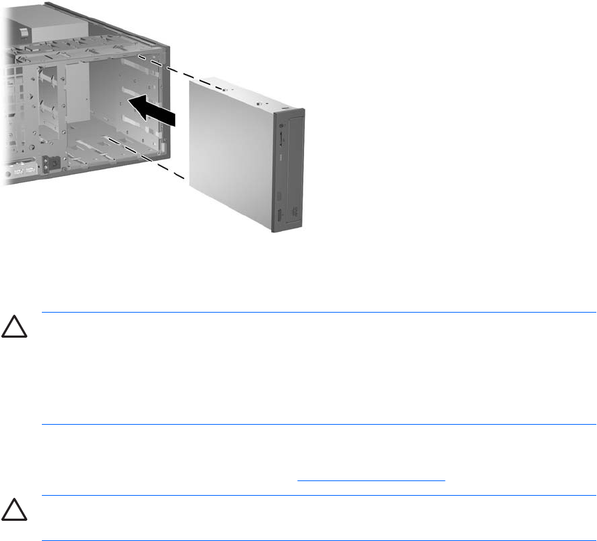 optical drive, into the bottom bay. This could cause damage to the drive and the system