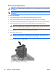 10. Connect the SATA data cable to the white system board connector labeled SATA1.