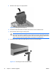 12. Connect the power cable (1) and data cable (2) to the rear of the optical drive.