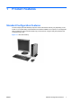 12. Place the computer firmly down into the stand. Figure 1-7 Placing the Computer on the Stand 13. Reconnect the external equipment, plug the power cord into a power outlet, and turn the computer on. 14. Lock any security devices that were disengaged when the computer cover or access panel was removed. To change from the tower configuration to the desktop configuration, reverse the previous steps.
