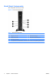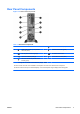 Front Panel Components Drive configuration may vary by model. Figure 1-2 Front Panel Components Table 1-1 Front Panel Components 1 Optical Drive 5 System Power LED 2 Headphone Connector 6 Hard Drive Activity Light 3 Microphone Connector 7 USB (Universal Serial Bus) Ports 4 Dual-State Power Button NOTE: 2 An optical drive is a DVD-ROM drive, a DVD-CDRW Combo drive, or a SuperMulti LightScribe drive.