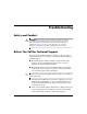 Troubleshooting Safety and Comfort Å WARNING: Misuse of the computer or failure to establish a safe and comfortable work environment may result in discomfort or serious injury. Refer to the Safety & Comfort Guide on the Documentation CD and available at www.hp.com/ergo for more information on choosing a workspace and creating a safe and comfortable work environment.