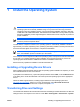 Table D-13 Solving Memory Problems (continued) Power LED flashes Red five times, once every second, followed by a two second pause, and the computer beeps five times. (Beeps stop after fifth iteration but LEDs continue flashing.) ENWW Cause Solution Memory is installed incorrectly or is bad. 1. Reseat DIMMs. Power on the system. 2. Replace DIMMs one at a time to isolate the faulty module. 3. Replace third-party memory with HP memory. 4. Replace the system board.