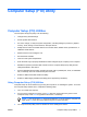 Table 1 Computer Setup (F10) Utility Main Menu (continued) PC Health Status Table 8 Computer Setup—PC Health Status on page 10 (Action Choices) Table 9 Computer Setup—(Action Choices) on page 10 Computer Setup—System Information NOTE: Support for specific Computer Setup options may vary depending on the hardware configuration.