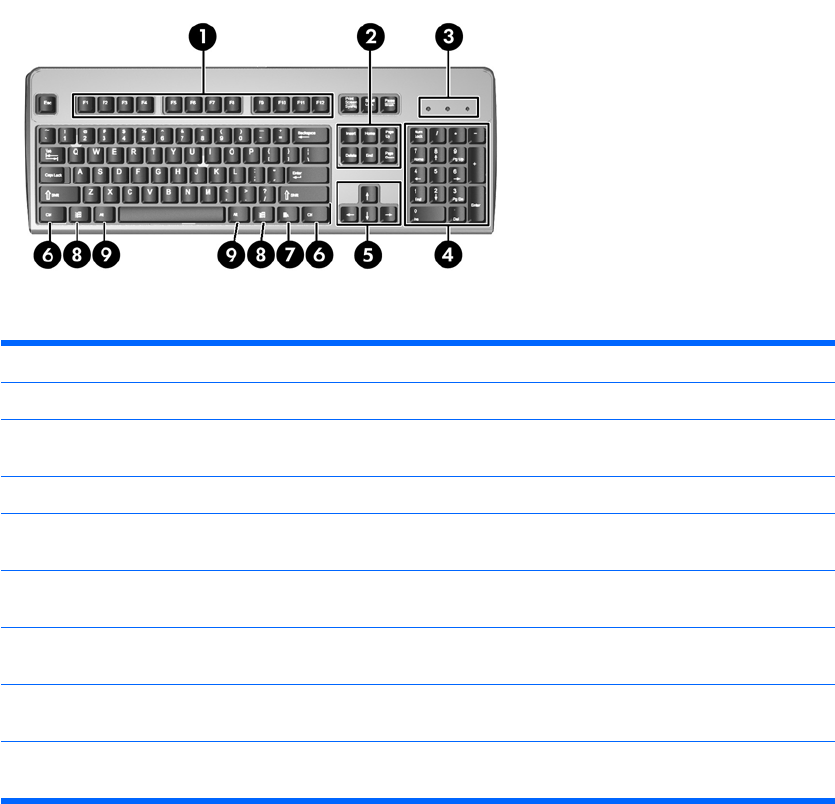 1 Function Keys Perform special functions depending on the software application being used.