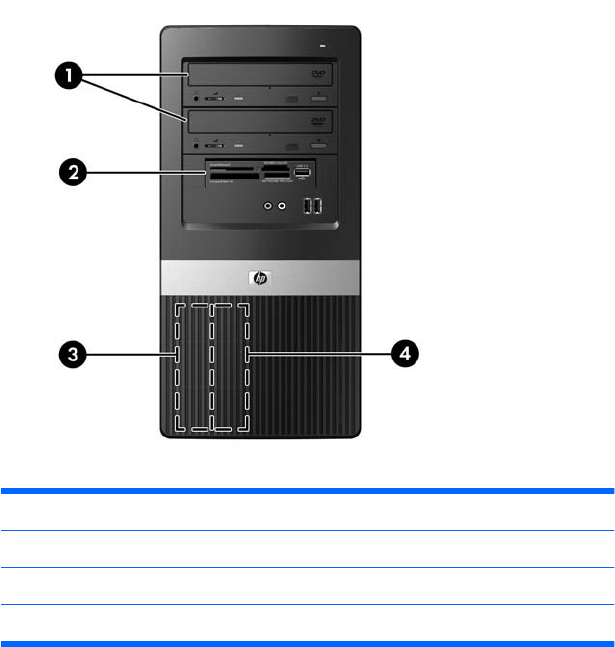 1 Two 5.25-inch external drive bays for optional drives (optical drives shown)