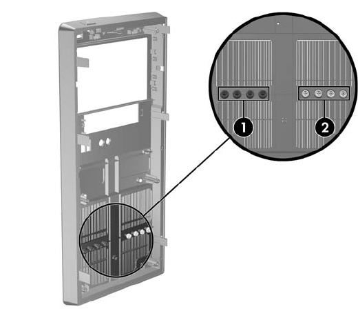 If needed, HP has provided extra drive retainer screws on the interior of the front bezel that are